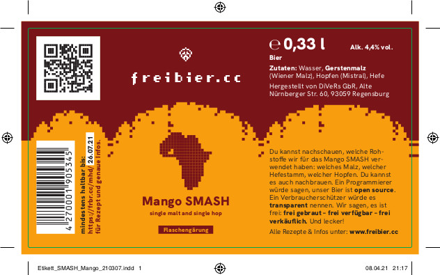 Das Mango SMASH ist ein Single Malt and Single Hop Bier, bei dem nur Wiener Malz und Mistral als Hopfen eingesetzt wurde. Durch die Hefe