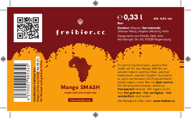 Das Mango SMASH ist ein Single Malt and Single Hop Bier, bei dem nur Wiener Malz und Mistral als Hopfen eingesetzt wurde. Durch die Hefe