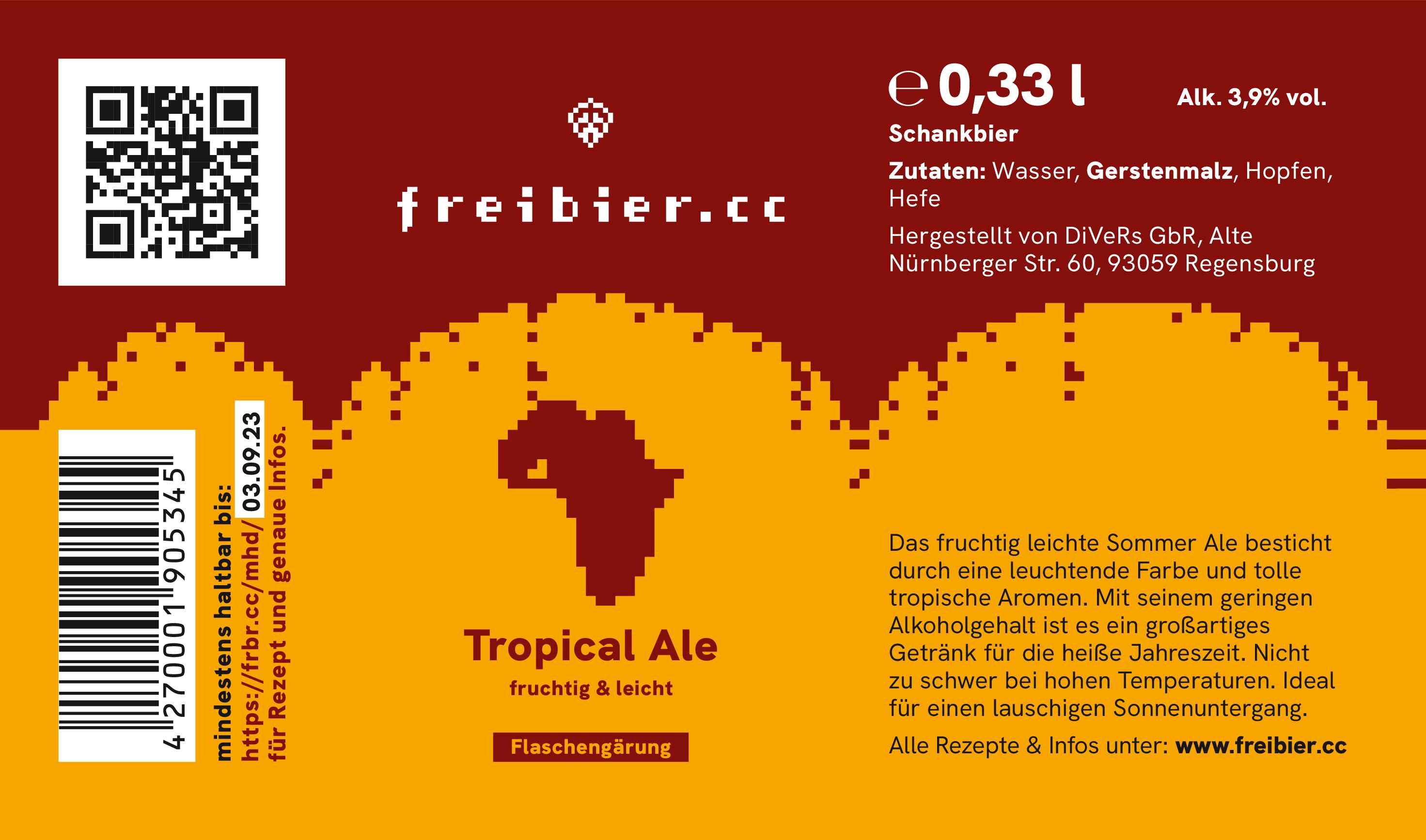 Das Tropical Ale ist der Nachfolger unseres Mango Ales. Ein Schankbier mit 10,1°P Stammwürze. Mit 3,8% Alkohol schön leicht. Trotzdem ein volles